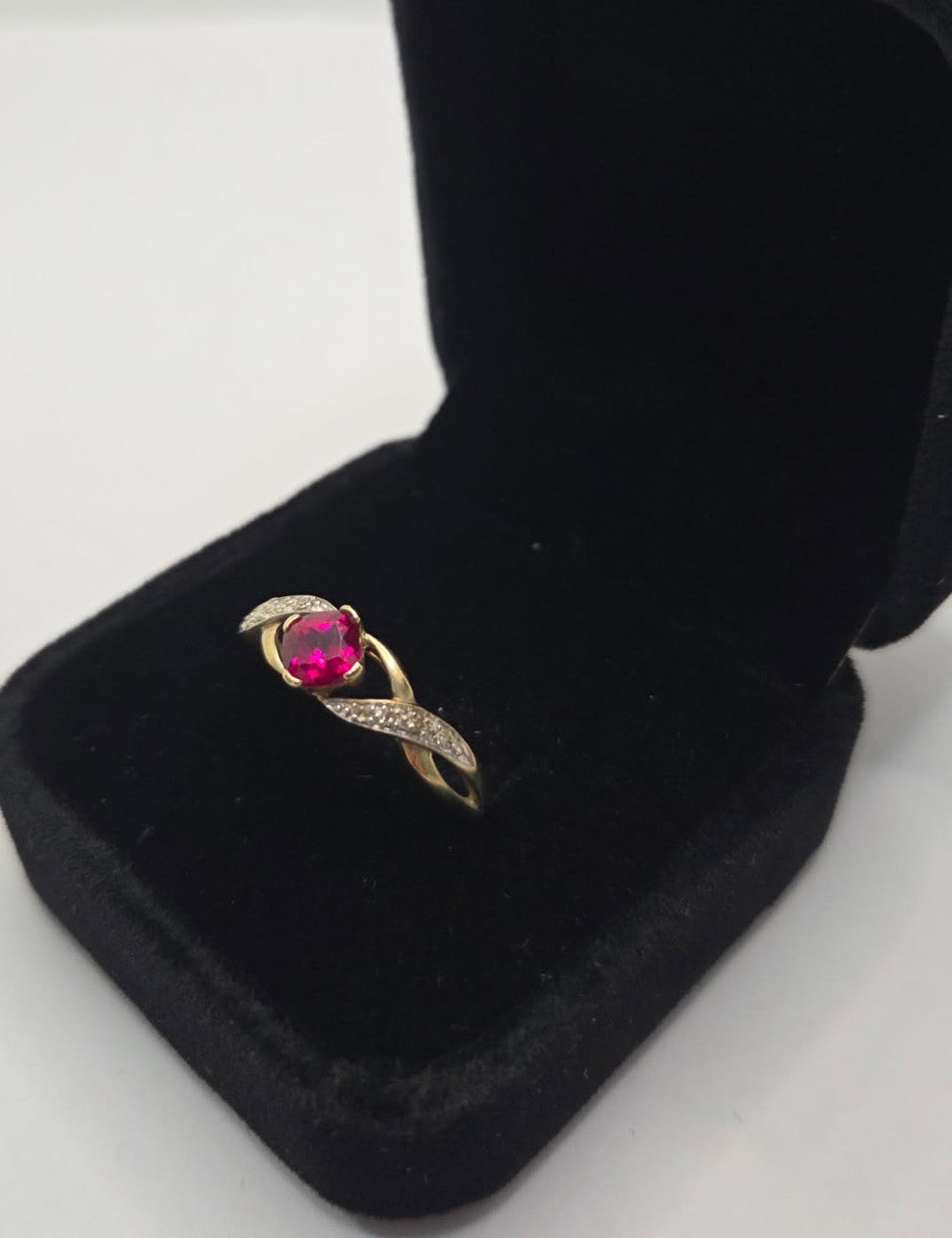 9ct Yellow Gold Created Ruby and Diamond Ring