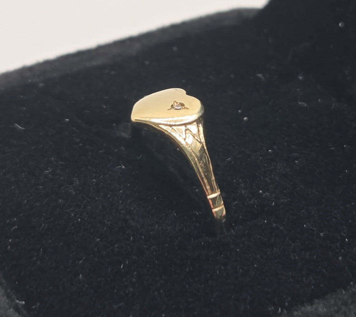 9ct Yellow Gold Signet Ring with Diamond