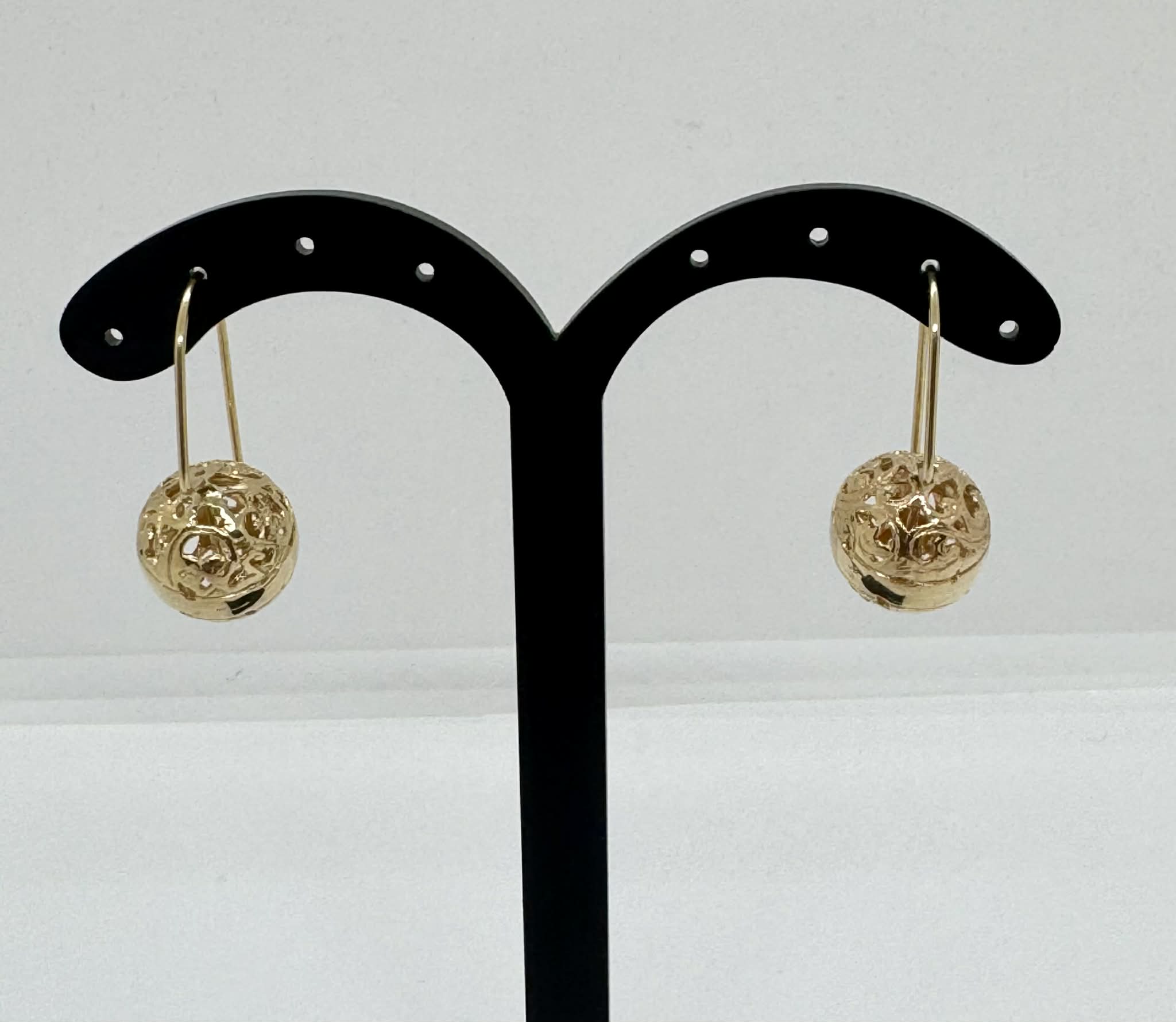 9ct Yellow Gold Euro Ball Filigree Drop Earrings