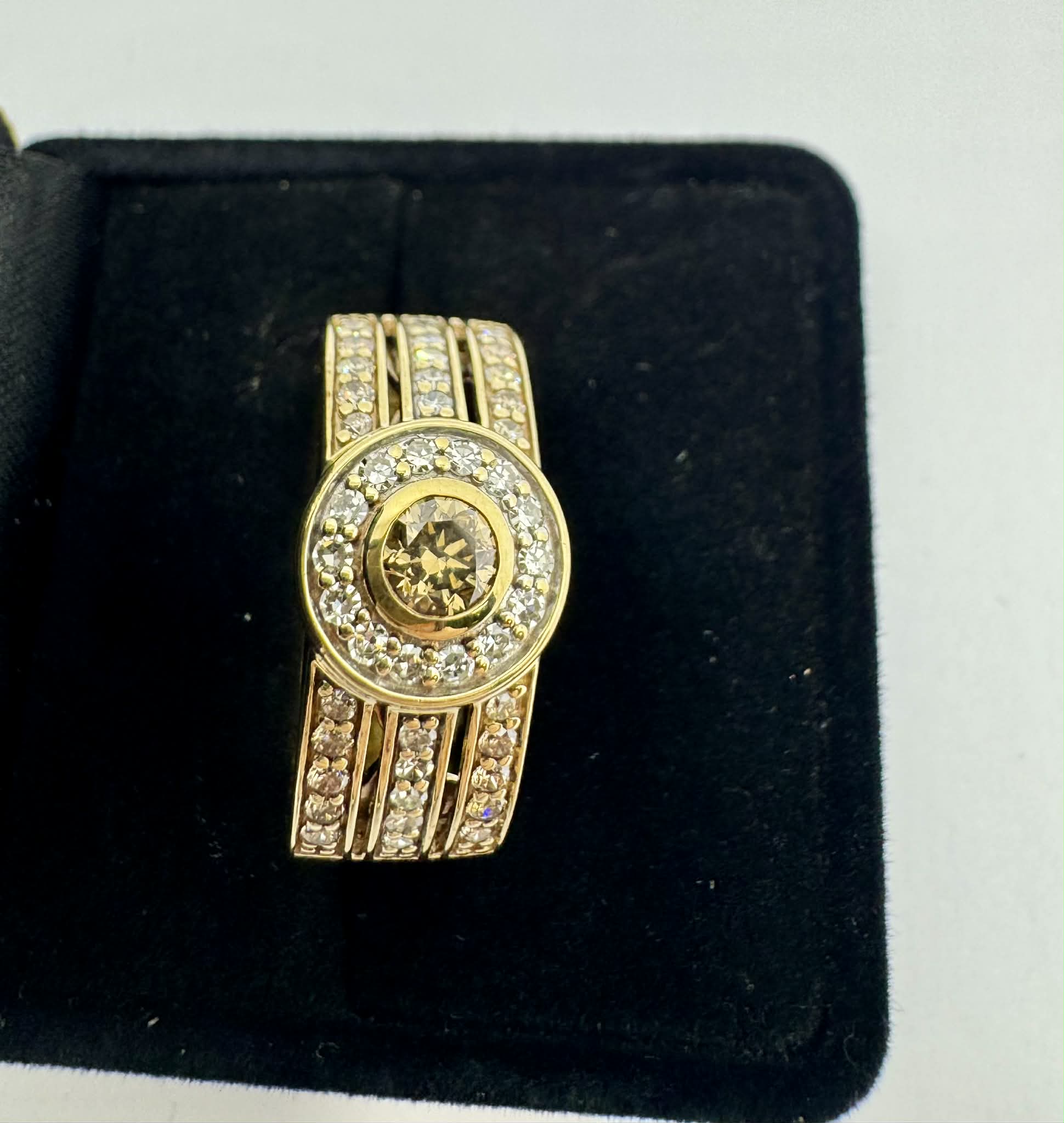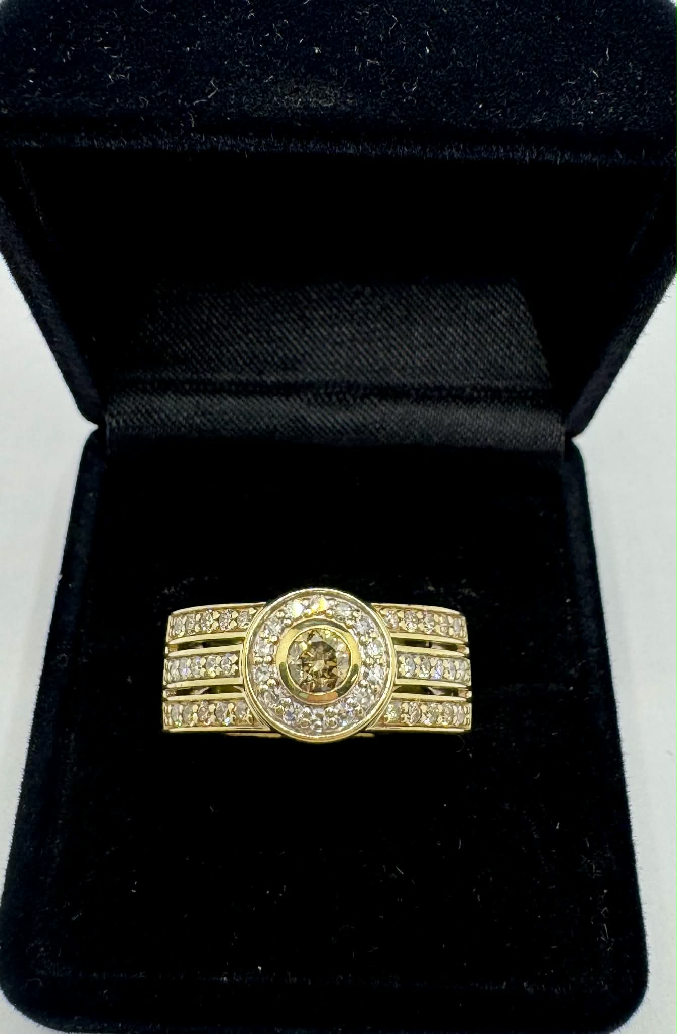 9ct Yellow Gold White & Champagne Diamonds Dress Ring