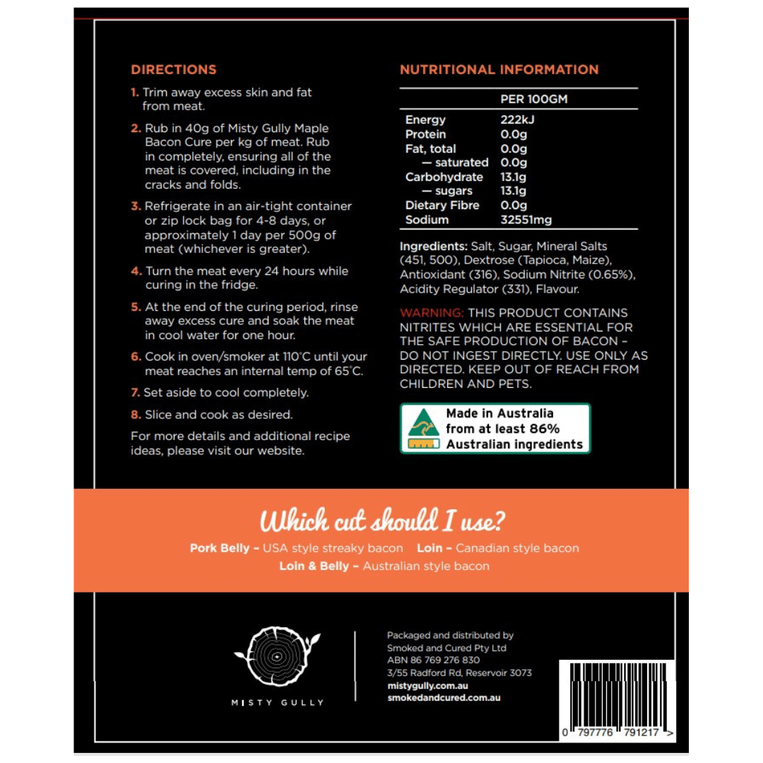 Make your own mouth-watering bacon at home with Misty Gully Maple Bacon Cure.