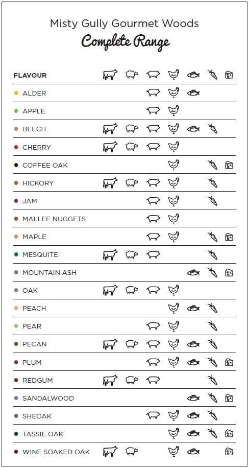 When it comes to making small goods, it’s a very popular choice for smoking ham, bacon and jerky due to it’s slightly sweet smoke flavour.